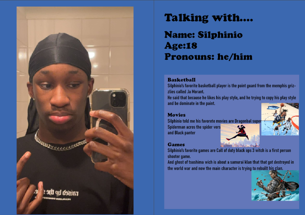 bij engels moest ik een artikel maken over een klasgenoot in indesign . ik heb het artikel gemaakt met de favoriete kleuren van Silphinio gebruikt om dit te maken