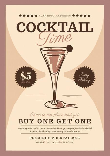 bij techniek heb ik een cocktail bar poster na gemaakt ik heb dit gemaakt met illustrator en met gedownloade fonts